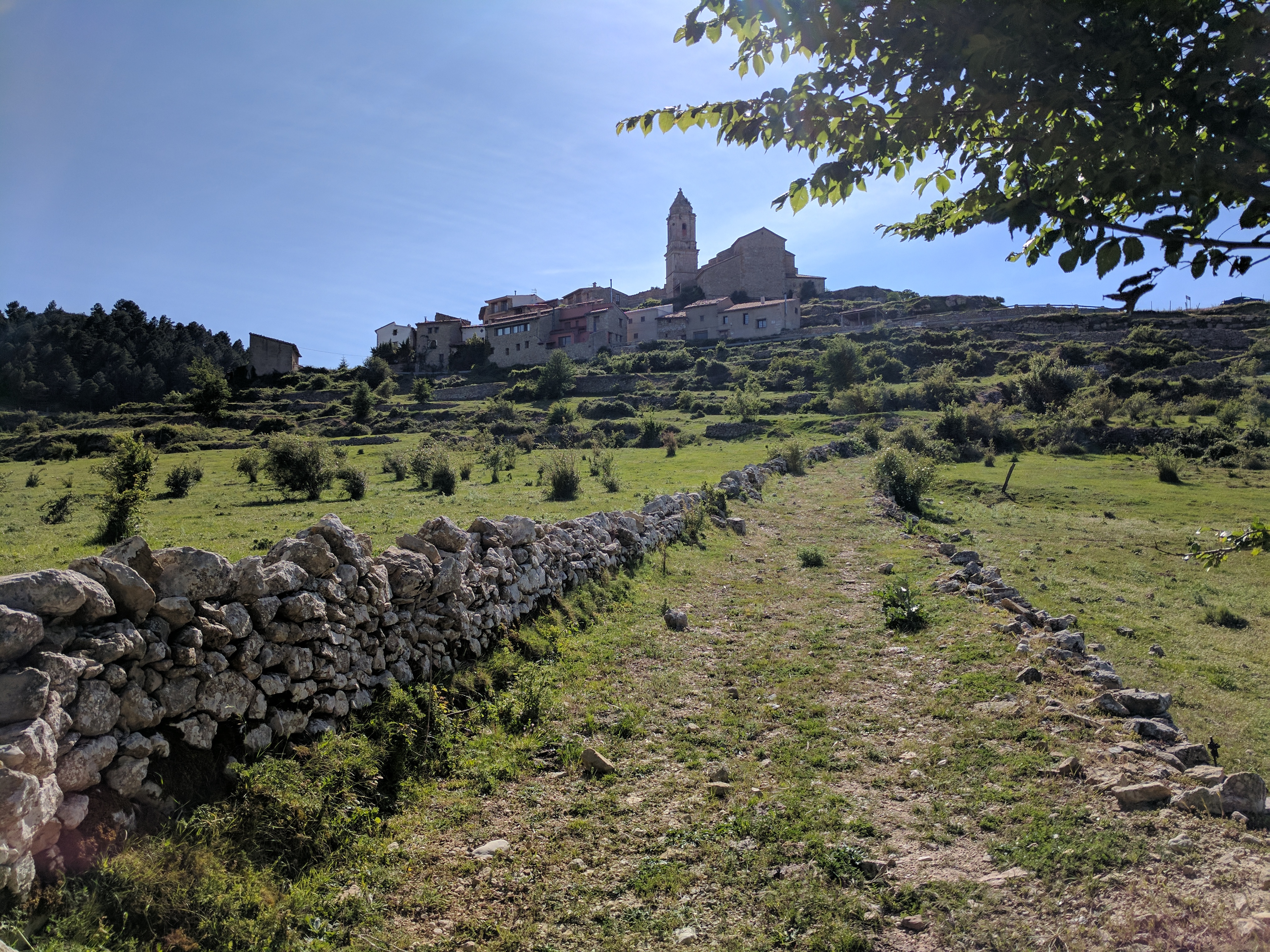 After a brief road walk, the path exited onto some dirt farm roads, but those quickly changed to an open trail that steadily rose up to open hilltops framed with stone walls. After reaching the top, the trail descended through nice forests before eventually intersecting the main road into Vallibona, a beautiful village stuck between the mountain passes. I was planning to do a short day and stay here, but the accommodation was fully booked. I thought about camping nearby, but I had no food and the lone shop in town was only open two days per week (and that day was not one of those two days). The hostal owner was very friendly and helpful, and offered to call ahead to see if there was accommodation available in Boixar, but he could only find a place in Fredes, which would make the day very long. I decided to give it a go, but I needed to hustle to make it before dark. After a seemingly long stretch of trail and unmaintained dirt roads, I finally decended into Boixar late in the afternoon. Boixar was very picturesque, but was largely deserted. I only saw one car that was parked, and I didn’t see a single person the entire time that I was exploring the town. There were casas rural, but there were no other businesses at all in town.