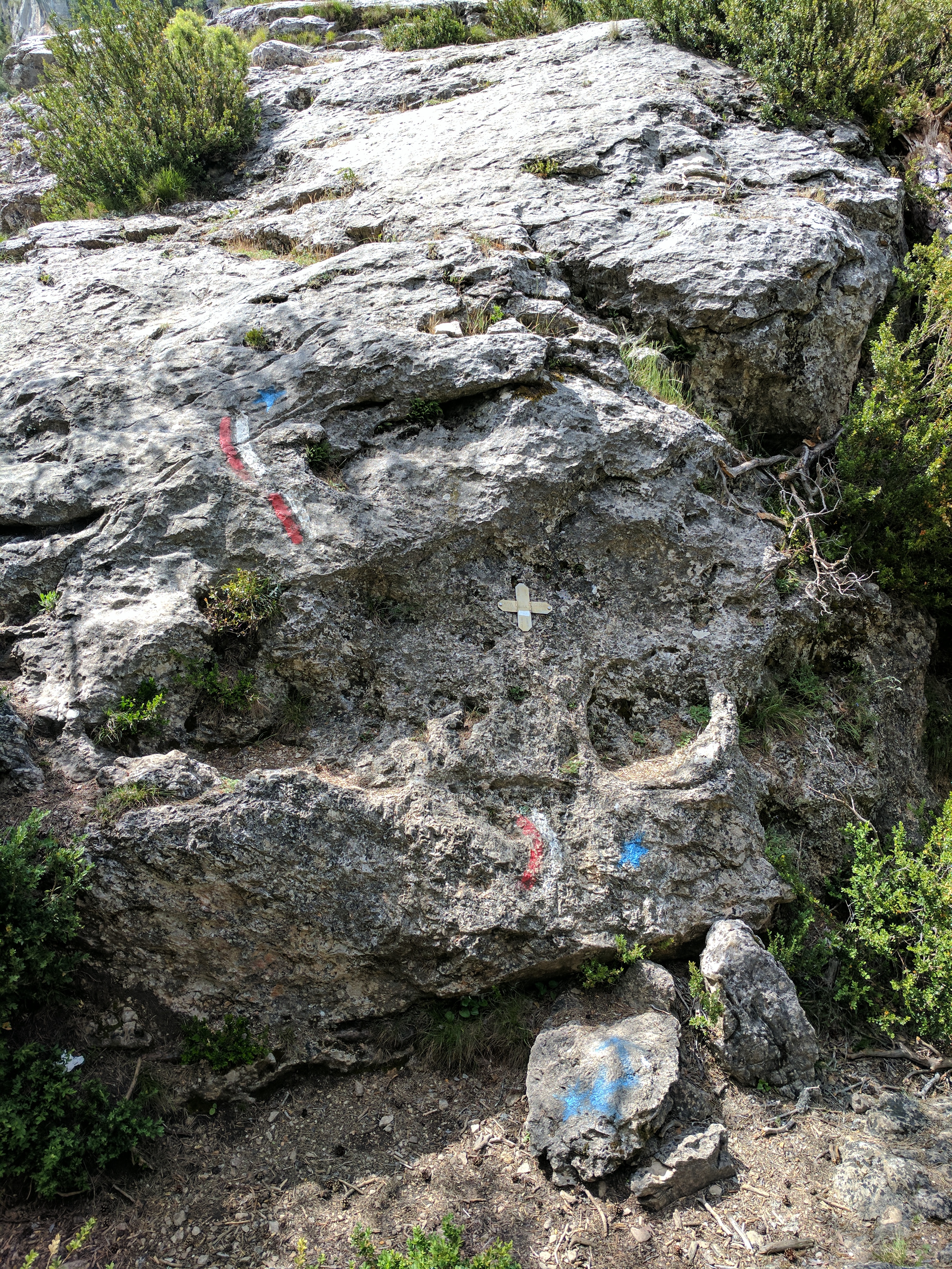 The next morning, I had breakfast and the restaurant was nice enough to prepare some sandwiches for me to take on the journey to Caro. I crossed from Valencia to Catalonia, and Catalonia did not disappoint. The trails and roads entered the Parc Natural del Ports and went through fantastic pine forests and passed by several huts before turning into one of the most technical and challenging trails that I have ever hiked. It was tough and extremely dramatic, with the trail clinging to the edge of a rock wall, and there were saw-tooth rock walls and columns all around. It was hard to believe the scenery, and I kept stopping to take photos. At one point you could actually see the flat farmland in the distance as it ran off into the horizon. The path even ran up the side of a boulder, with the trail continuing at the top. It was amazing, but it wore me out.