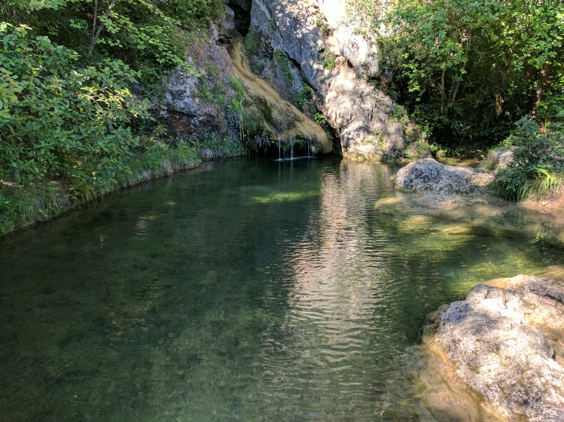 After camping just outside Arboli, I got an early start to tackle the long day out of the mountains and into Reus. The trail was very rocky to start off with, but it was good trail with good waymarking. It leved off before eventually dropping into a sharp canyon, which was very beautiful. There were two waterfalls, one with an emerald green pool and one with a cloudy blue pool. The vegetation was also very green and thick. This was my favorite spot of the day.