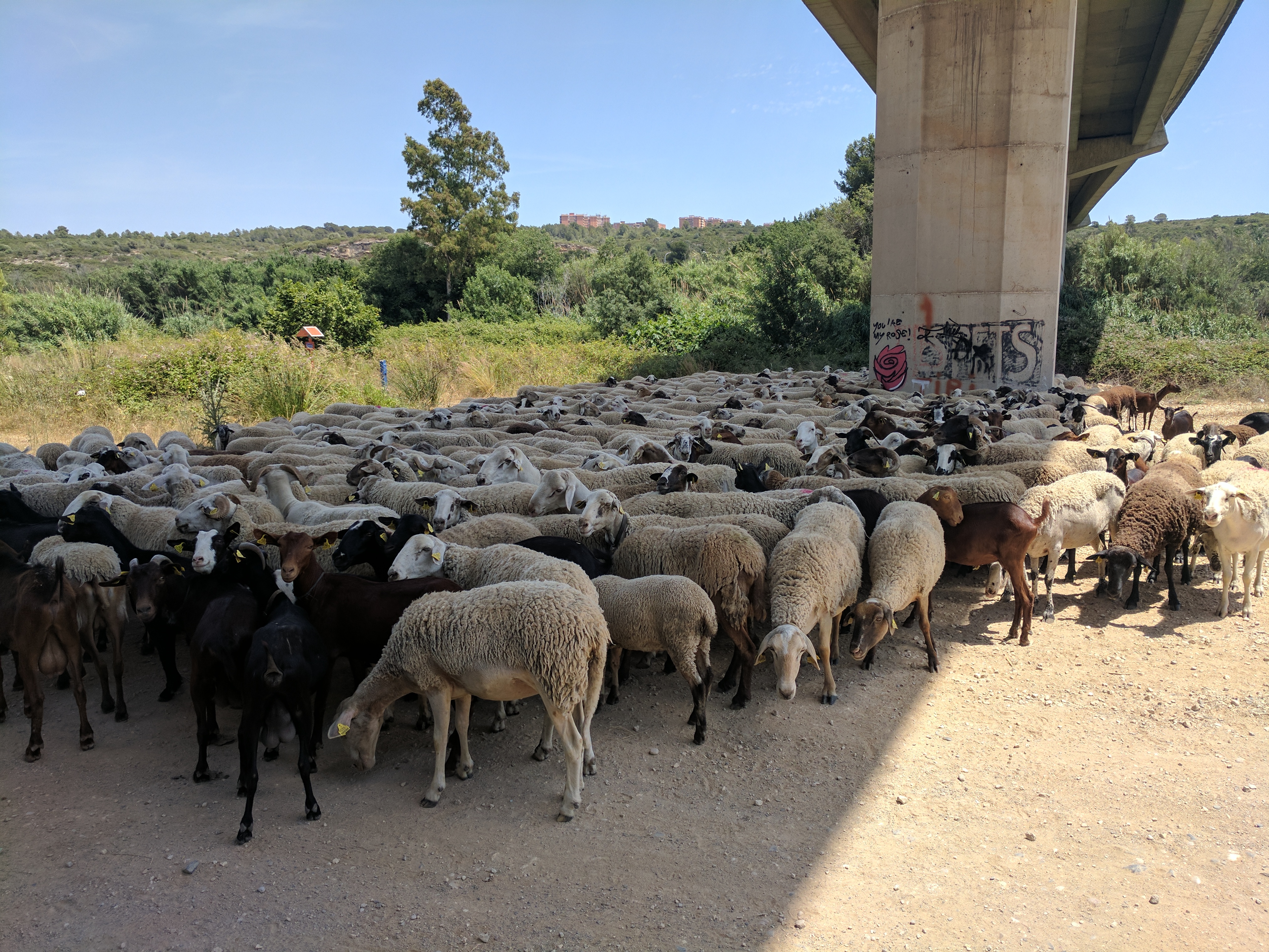 The day from Reus to Tarragona was honestly not very good. I felt fine walking, but it was hot and the area was not very nice. Once I left the beautiful confines of Reus, it was mainly suburban farms and industrial area until the path ran into the Reus/Tarragona regional airport. It followed the edge of the airport grounds before joining a busy two-lane highway, which was not the safest place to walk. The only decent spot along the day’s route was the town of Constanti, which was about 7km from Tarragona. The town provided a respite from the sun, busy roads, and weird smells of the industrial area. I stopped there for a quick break before the last hop to Tarragona. That last hop was not any better, as the path found a dry creek bed, and followed the dirt road next to it, which also paralleled the main highway into Tarragona. It was dusty and hot, and there was nothing photo-worthy except a flock of sheep and goats that had hunkered down underneath a highway overpass to escape the sun.