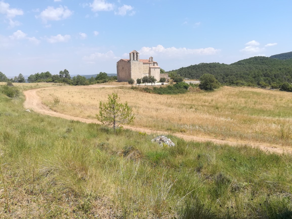 The day from Santes Creus to Sant Joan de Mediona was long, and there were no towns in between. It started with a solid climb out of the agricultural valley and a stint on a rocky path overgrown with some thorny shrubs, but the path finally entered sections of forest and wheat fields. There was an excellent old church near the wheat fields before the path started to utilize the fire roads along the forested ridge that eventually dropped down into Sant Joan de Mediona.