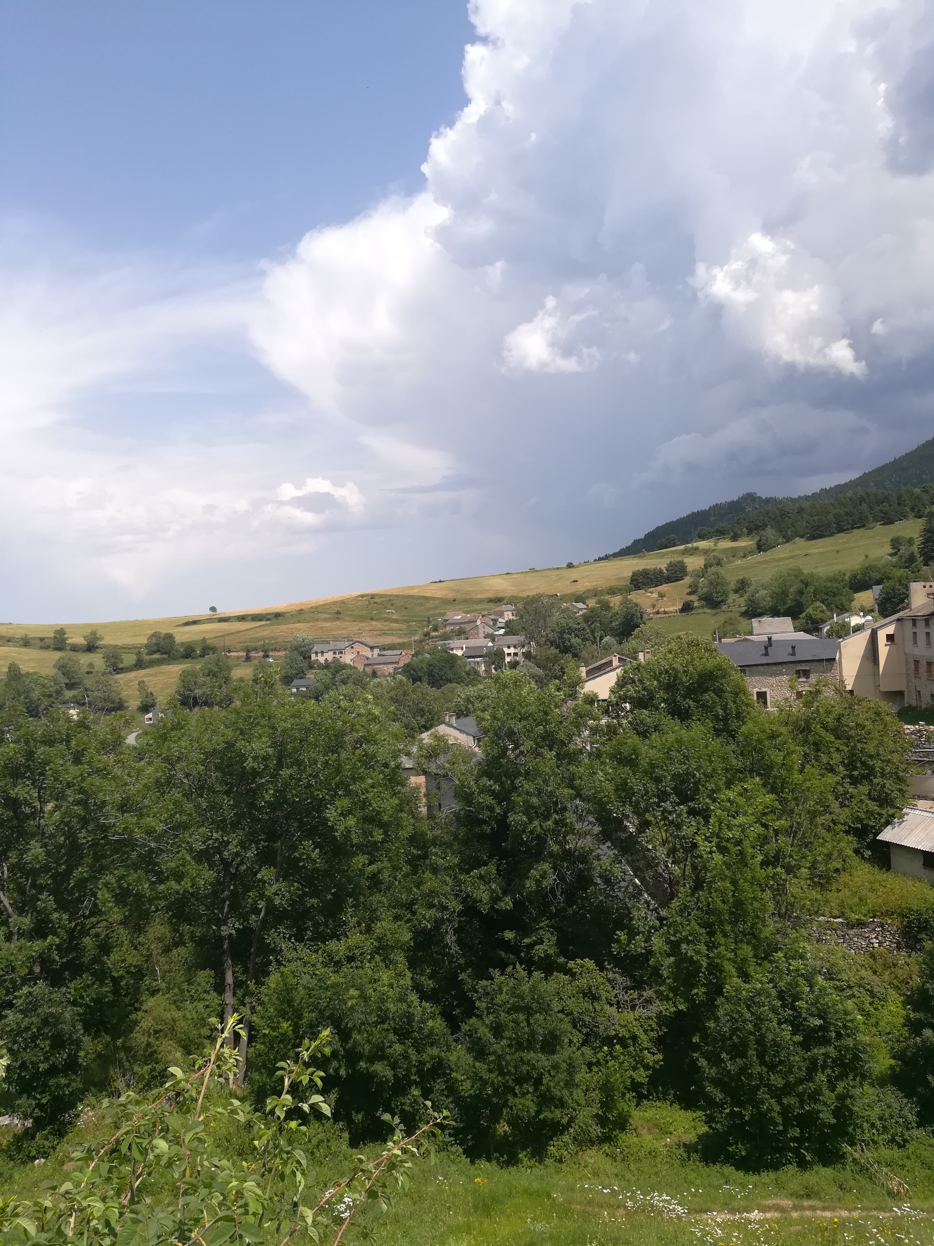 This first day was a transition day. The GR4 carried me to Puigcerda where it terminates. The new path is the GR10, which started some 27km away from Puigcerda in the very small village of Planes. Since there was no official path between the two towns, it was a day of freelance walking where I picked a route that I liked and followed it. The route worked out well and there were no surprises as I worked my way along the valley before eventually climbing up to the hills via the pretty little town of Llo. I then skirted the ski areas before making it to Planes. I arrived a bit early, which turned out to be a great thing because some fairly violent thunderstorms hit, bringing lightning and coin sized hail.