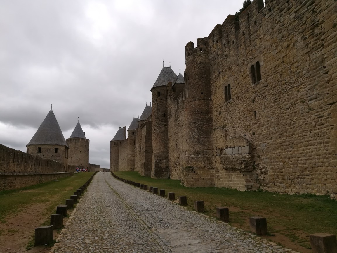Going into Carcassonne the next day was shorter, but a mixed bag. There were some nice sunflower farms, but much of the rest was navigating around busy roads and suburbs outside of Carcassonne. However, everything changed as I approached the walled old city on the edge of Carcassonne proper. Suddenly there were walls and towers everywhere and, upon turning the corner towards the drawbridge entrance, there was a mass of tourists. While it was the height of tourist season, it was still very interesting to navigate the narrow streets of the very well preserved medieval town. There are not too many medieval towns in Europe that are this well preserved. Aside from the tourist shops, it looked like I had gone back in time.