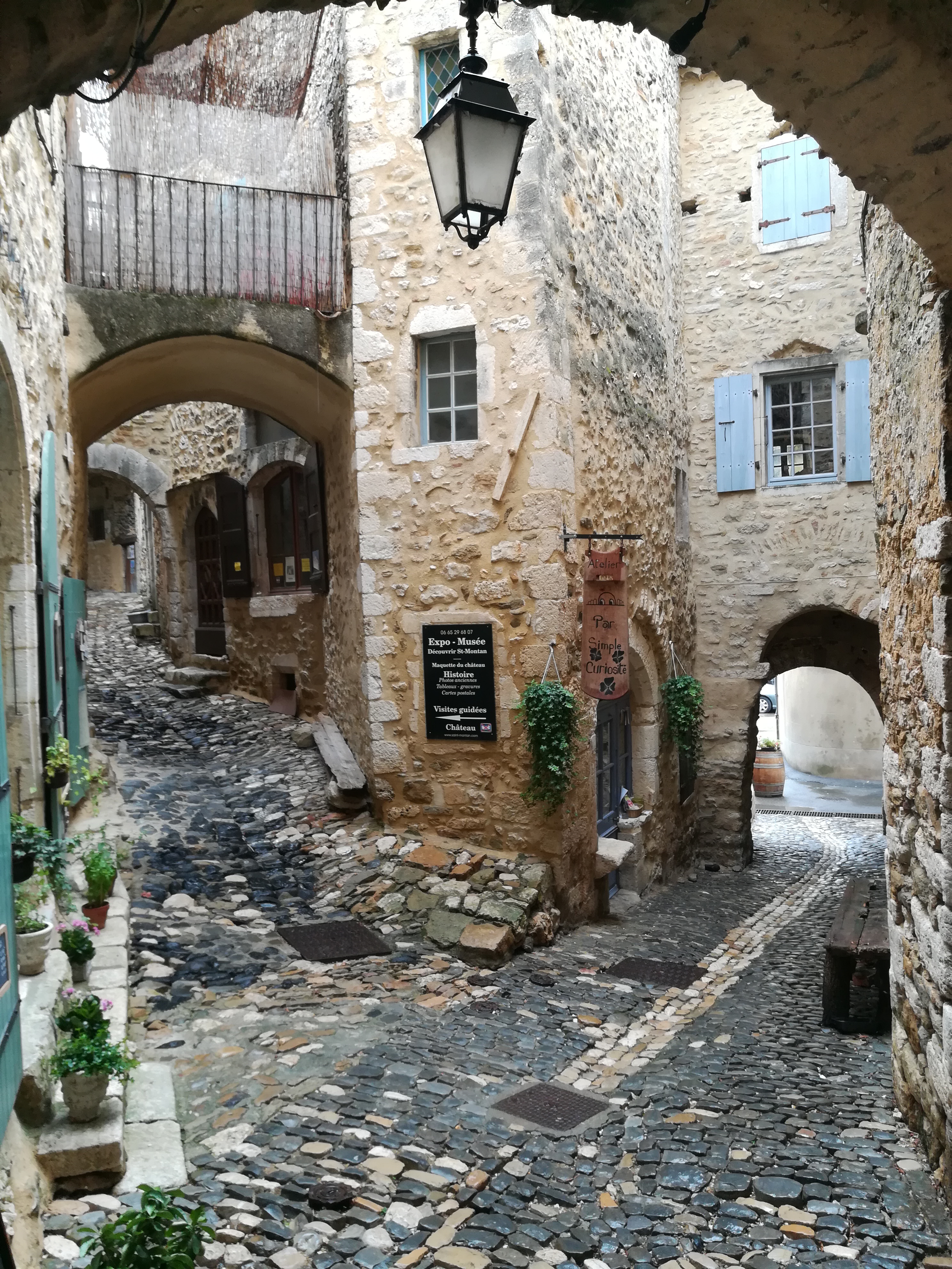 Leaving the buzzing river town of Saint Martin d’Ardeche, I had a long day to Viviers on the banks of the Rhone River. Like the previous few days, the terrain was less than spectacular. The first 27km to the village of Saint Montan was again on boring dirt roads through the dry and shrubby hills with almost no views. I was thankful to arrive in Saint Montan, which is a very impressive little medieval village. However, as soon as I entered the village it started raining. I took cover for a bit before skipping through town to find a cafe shelter to wait it out. After a bit the rain stopped, and I used that brief break to explore the old village and castle.