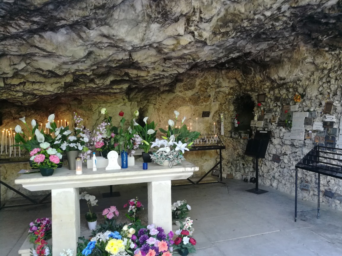 The next day marked a nice milestone for me, with the crossing of the Rhone River. When you have a chance to cross a major river on a walk, it’s always an important spot. After the crossing and taking a millisecond to pat myself on the back, I followed the rolling hills though some short forest and dry grass trails before emerging at the lush, green Abbaye Notre-Dame d’Aiguebelle. While not a huge or intricate monestary, it was beautifully simple and tranquil even though there were a fair number of people visiting. I particularly enjoyed the grotto.