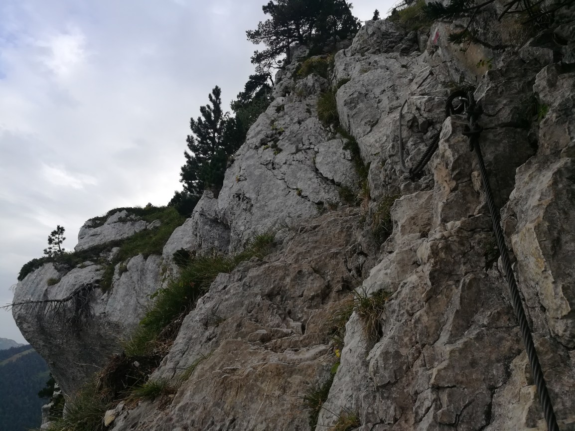 The next few days were a full-blown lesson on the beauty and ruggedness of the Chartreuse Mountains. Immediately there were several rocky ledges with cable handholds and also some narrow cracks that I could barely fit through with the pack on.