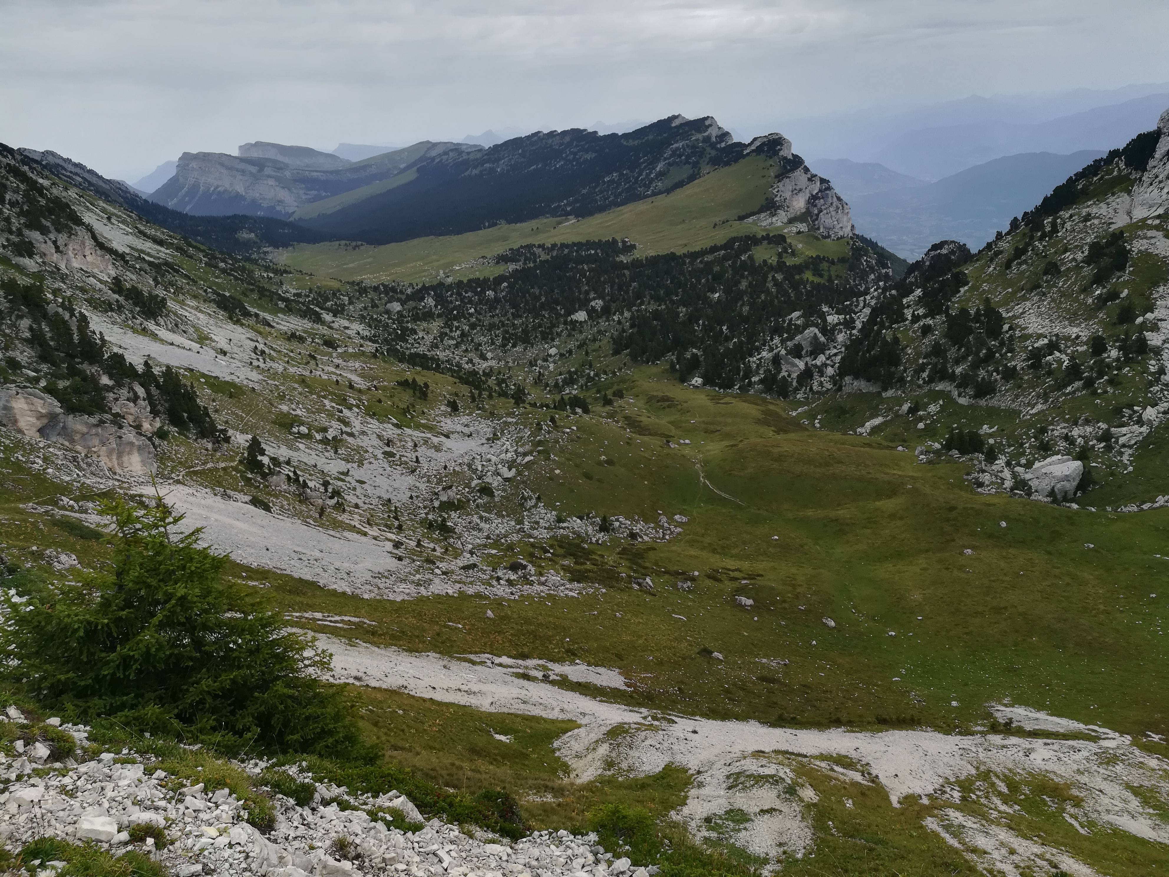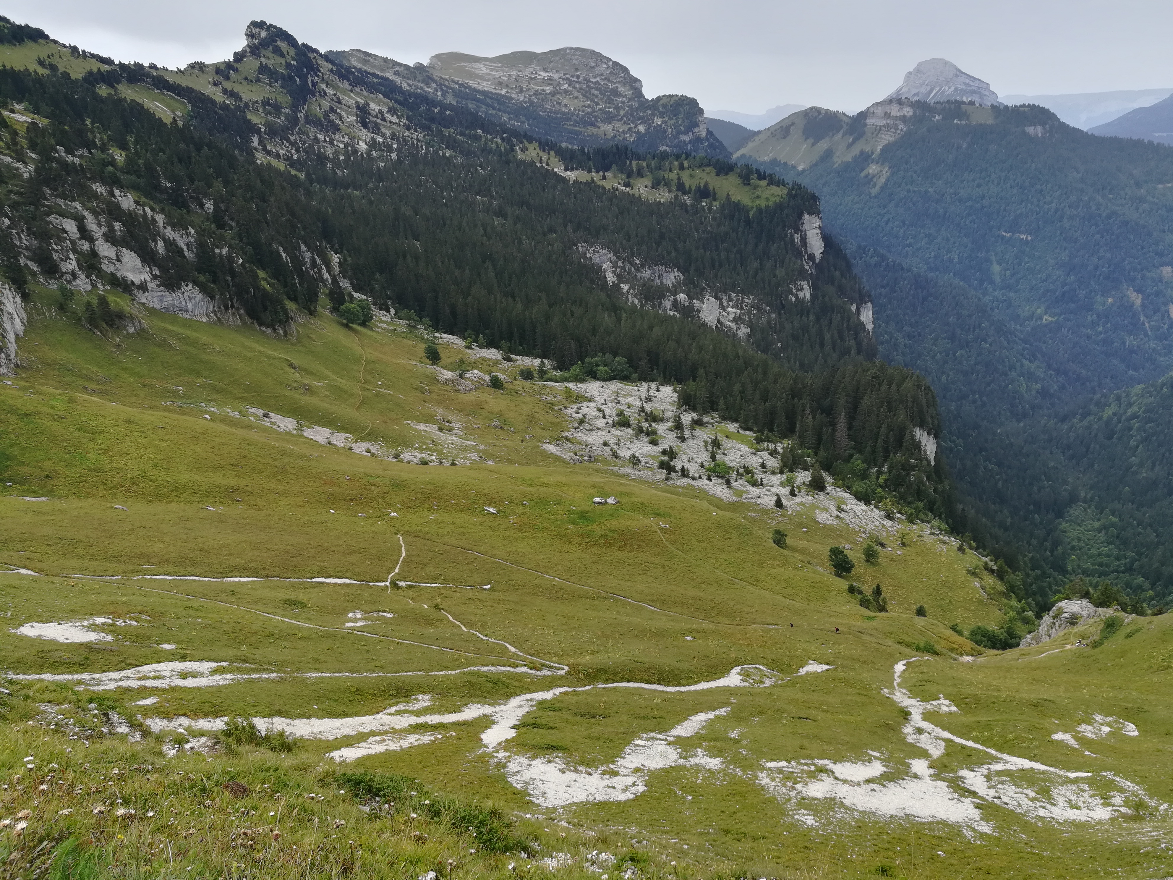 After a errand-filled rest day in Grenoble, the climb out of the urban basin was rigorous and busy. There were a lot of people hiking this section, and there were quite a few people taking part in other outdoor activities. I saw trail runners, spelunkers, rock climbers, and paragliders in the entrance to the Chartreuse Mountains. The col where I camped the first night was buzzing with people until nightfall.