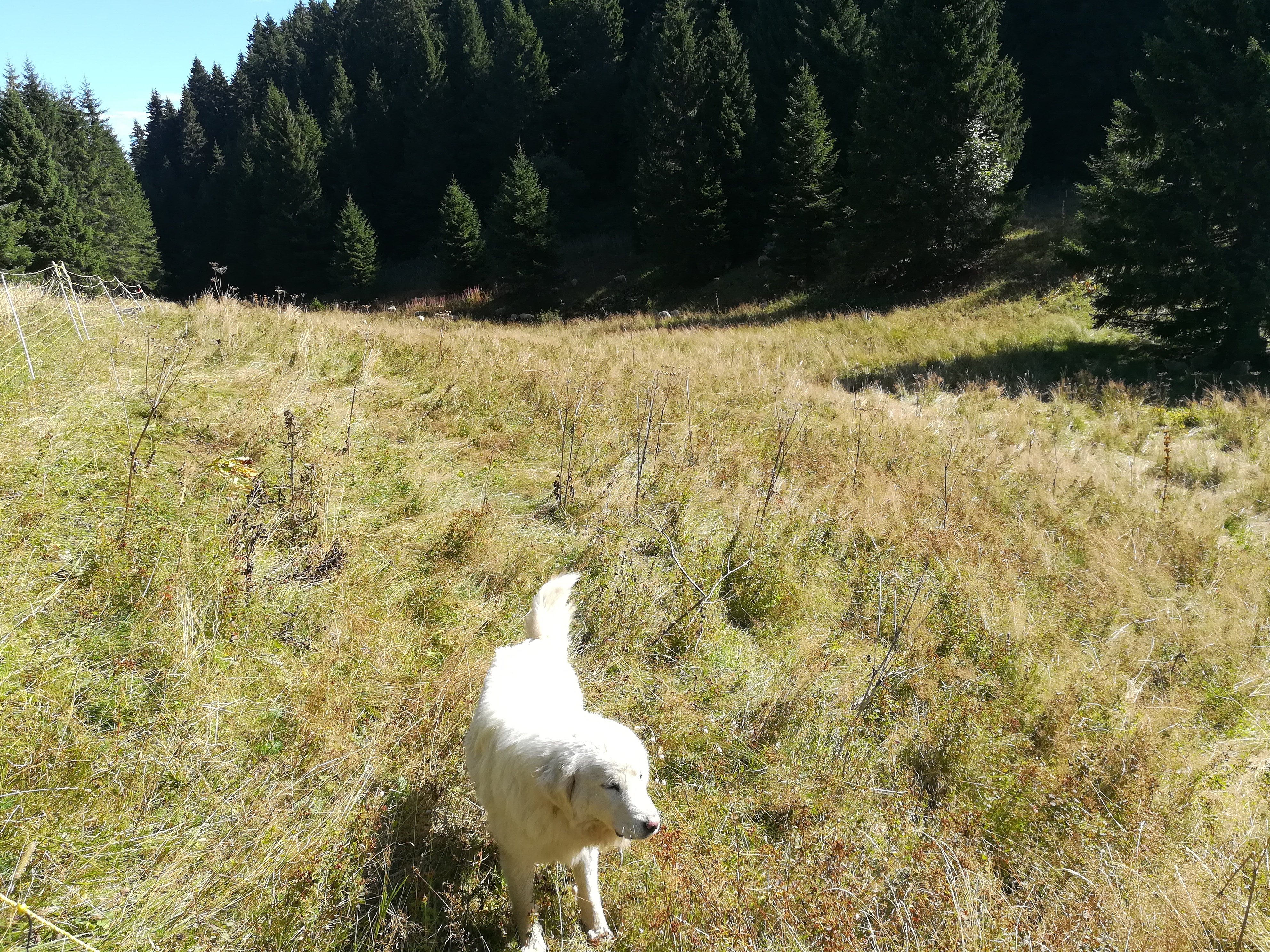 The rain finally stopped after Chatillon en Michaille, but it reinforced my desire to get rid of my old shoes during the next rest day. I had been carrying new shoes since Grenoble, but wanted to get some more use out of my old shoes before changing. There was a long stretch of busy road to Saint German de Joux followed by logging road walking through Giron, and I found a spot to camp along the dirt roads. The camping was very cold and damp, and I was anxious to get going in the morning to warm up. The path went though rolling hills and nice green valleys. While walking next to a penned area, I was challenged by a sheep dog that was protecting his flock, but he knew I wasn’t going to bother the sheep. Just doing his job, and doing it well.