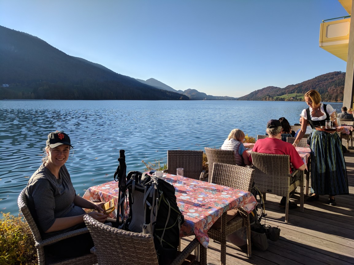 The following day marked our arrival in the Salzkammergut lake district, emerging from the hills to the shore of the Fuschlsee. We took a coffee break there before continuing on to the village of Sankt Gilgen on the Wolfgangsee.